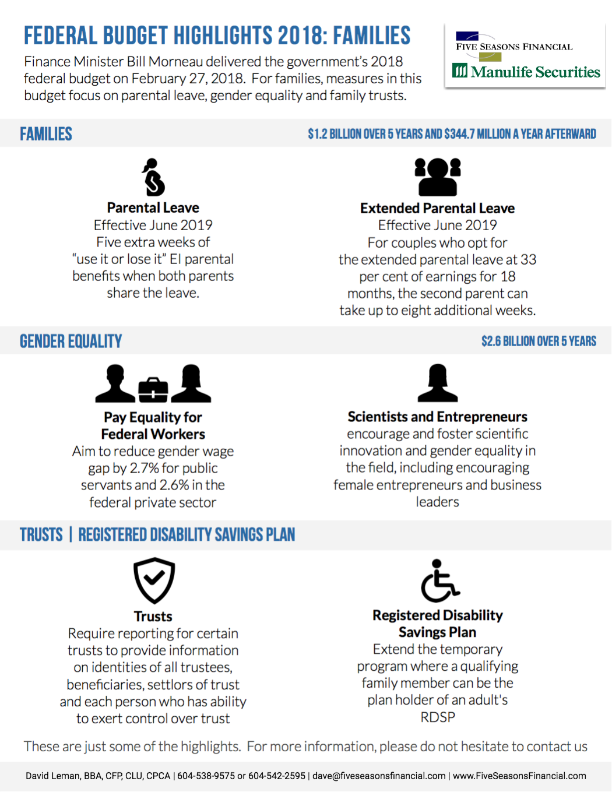 Several key changes relating to personal financial arrangements are covered in the Canadian government’s 2018 federal budget, which could affect the finances of you and your family. Below are some of the most significant changes to be aware of: